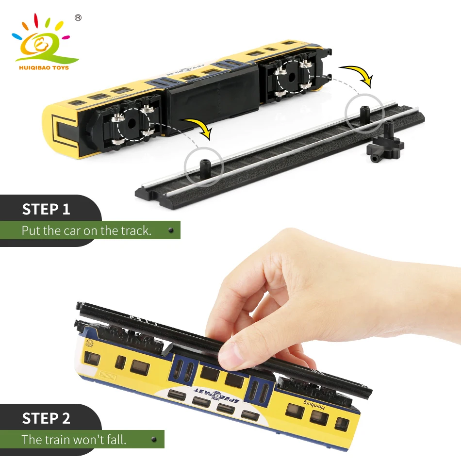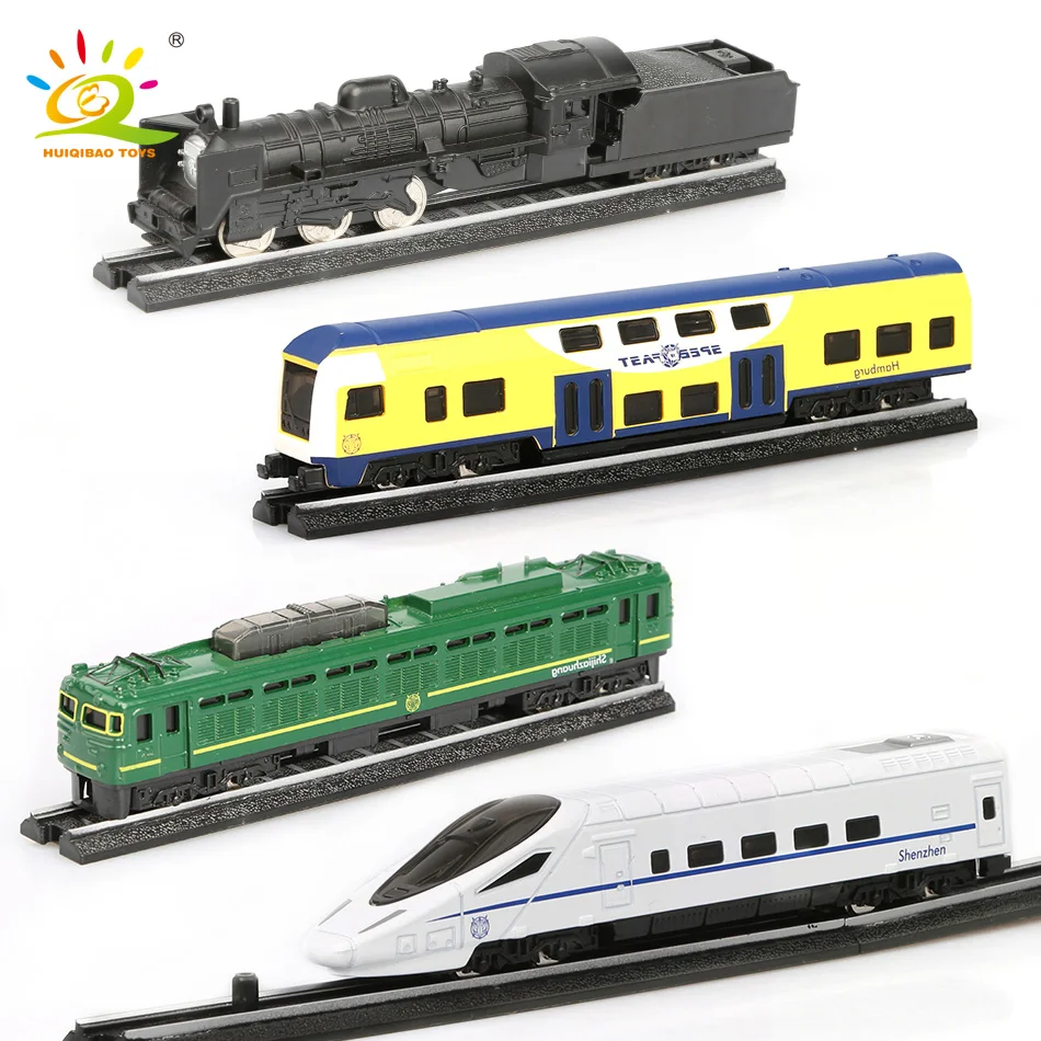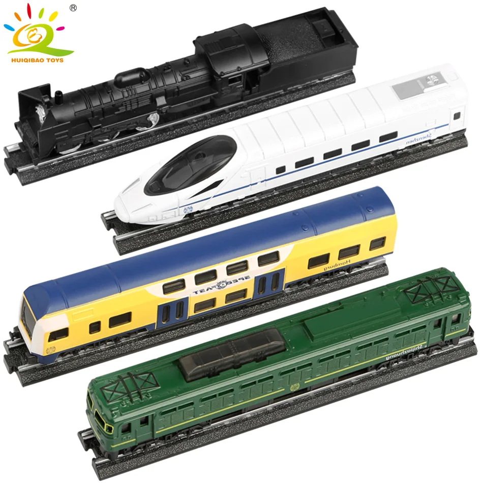 HUIQIBAO TOYS 4pcs/set Simulation Metal Steam Cargo Diecasts Train High Speed Rail Alloy Railway In
