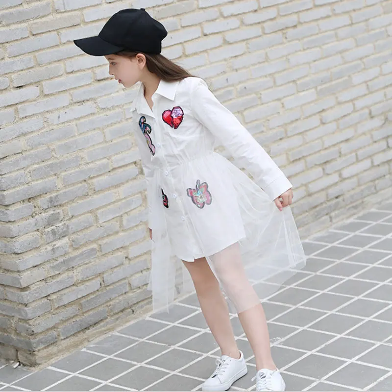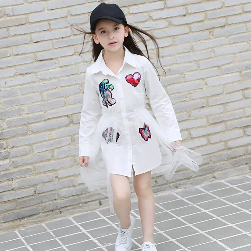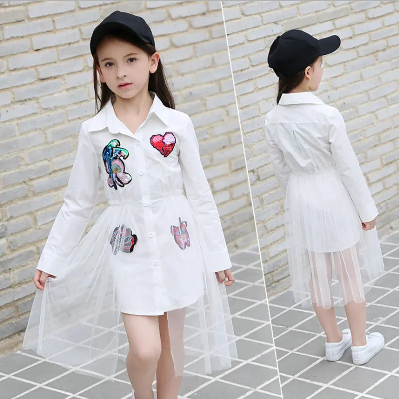 New 2018 Cotton Kids Girls Dresses Net Yarn Applique Children Clothing Teens girl Party dress 6 8 1